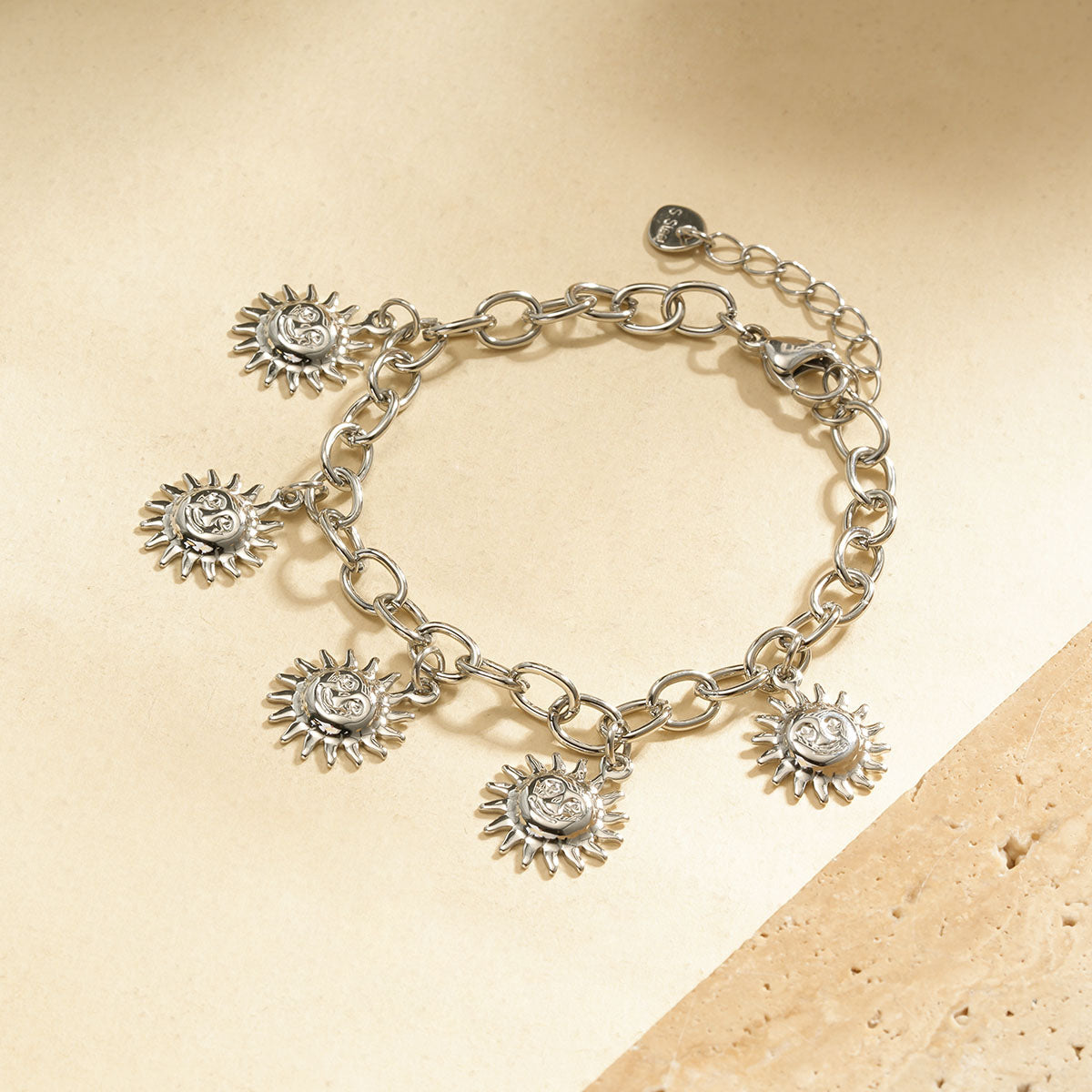 Prix régulier €18,00Prix soldé €18,00 Prix régulier €0,00Prix unitaire / parBracelet chaîne argentée breloques soleil visage. Des breloques solaires illuminent ce bracelet chaîne argentée. L'esprit bohème se mêle à un éclat moderne, parfait pour toute...