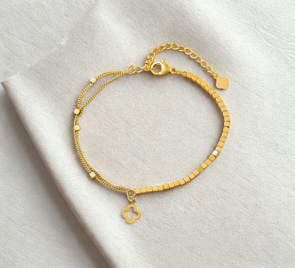 Prix régulier €14,00Prix soldé €14,00 Prix régulierPrix unitaire / parBracelet Minimal Clover Bracelet minimaliste avec un charm trèfle doré porte-bonheur. Portez un symbole de chance et d’élégance avec le Minimal Clover. Ce bijou fin mêle...
