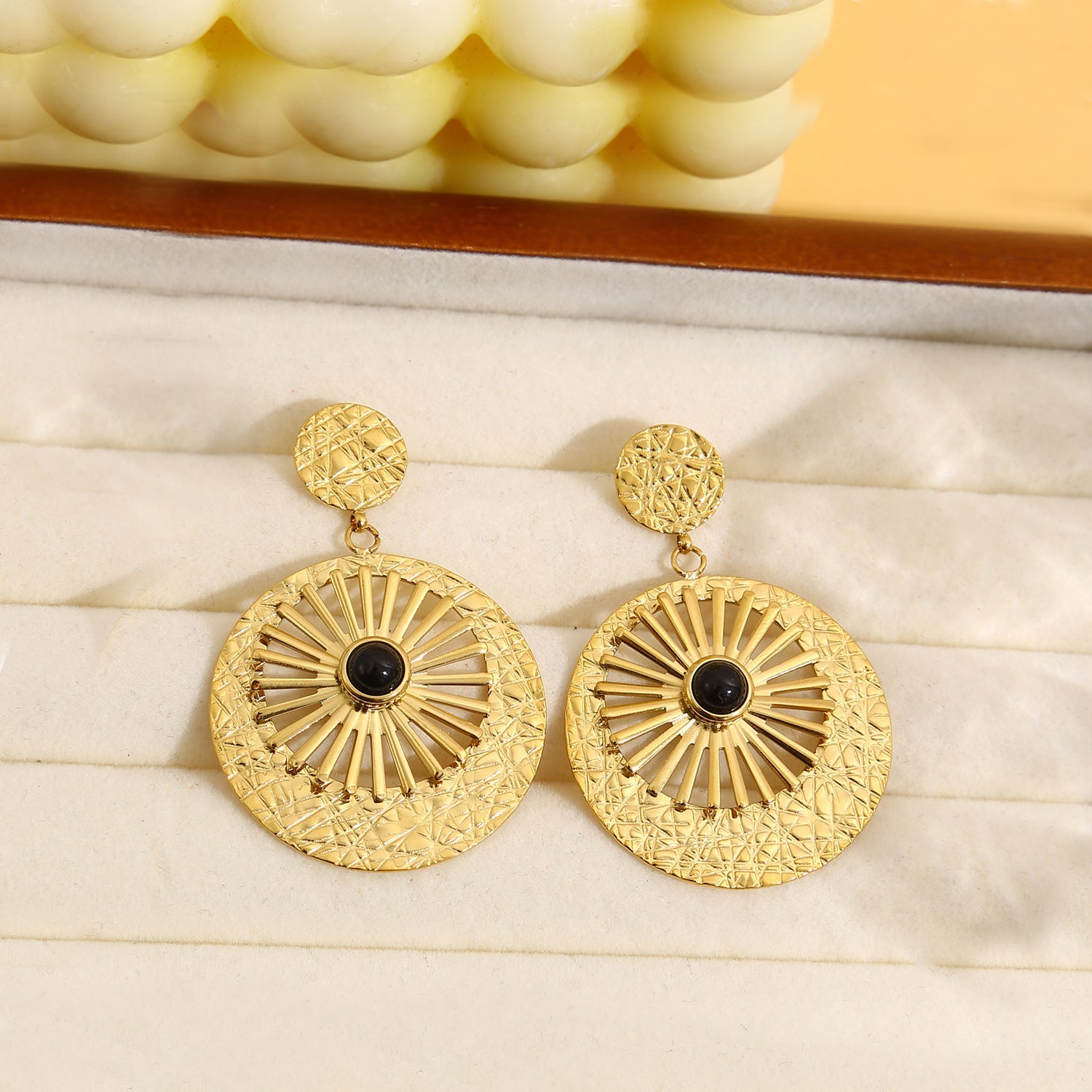 Prix régulier €12,00Prix soldé €12,00 Prix régulierPrix unitaire / parBoucles d'oreilles dorées pendantes avec perle - pierre noir Illumine votre visage avec une touche de féminité subtile Capte les regards avec sa pierre noire mystérieuse...