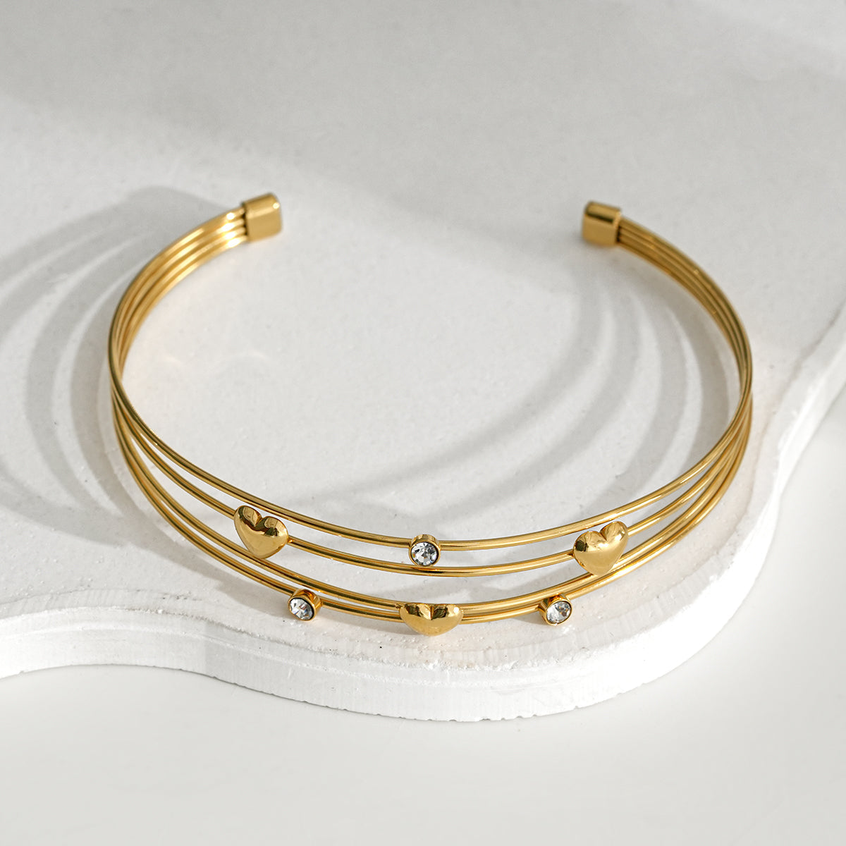 Prix régulier €18,00Prix soldé €18,00 Prix régulierPrix unitaire / parBracelet Argenté et Doré Jonc Ouvert Quadruple Fils Ornés de Cœurs Et Strass Raffiné pensé pour révéler votre style avec élégance Il se distingue par ses...