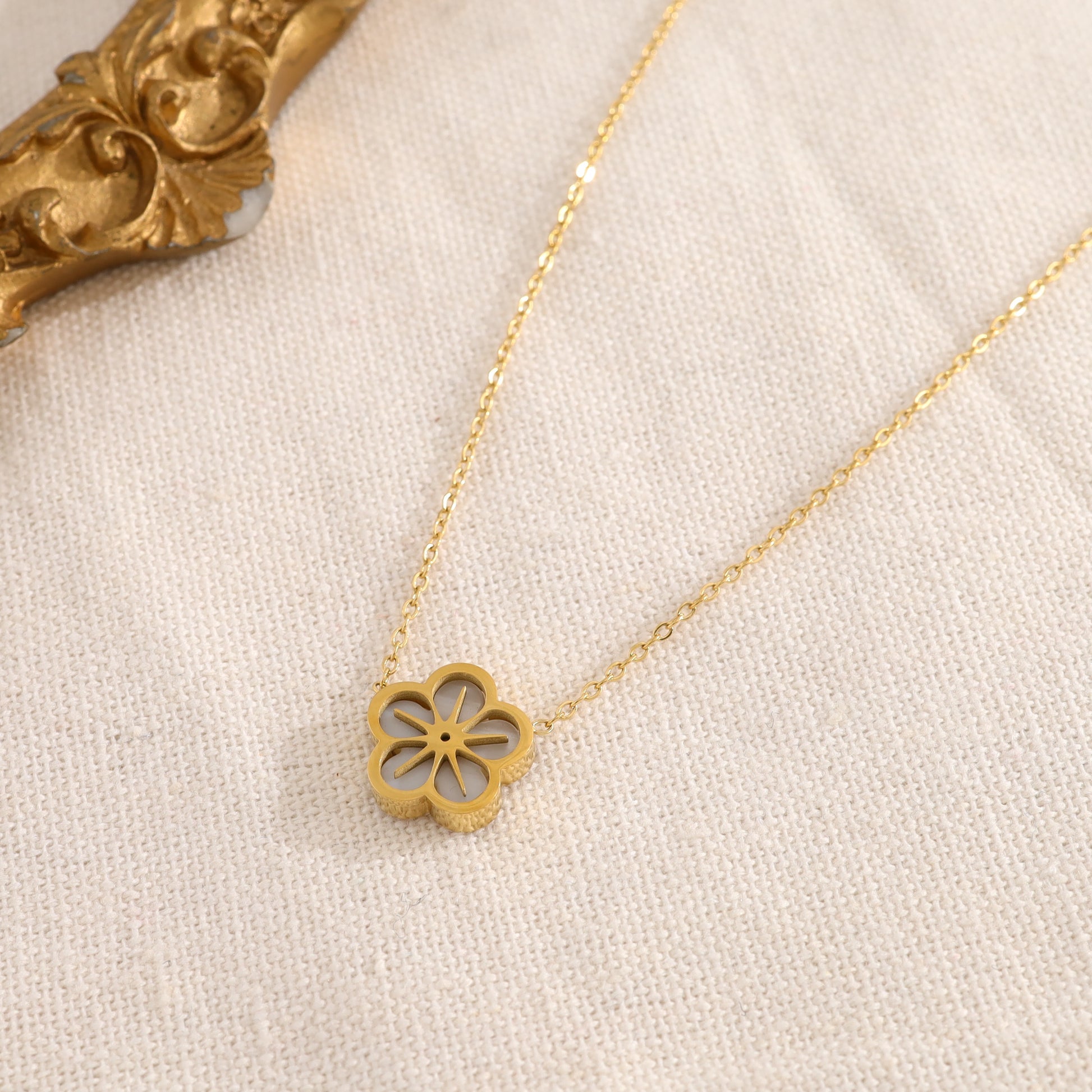 Prix régulier €14,00Prix soldé €14,00 Prix régulierPrix unitaire / parCollier Doré Fleur de Prunier Incrustée de Pierre Nacre BlancheUn collier floral délicat et lumineux.La fleur de prunier gravée est sublimée par une pierre blanche nacrée....