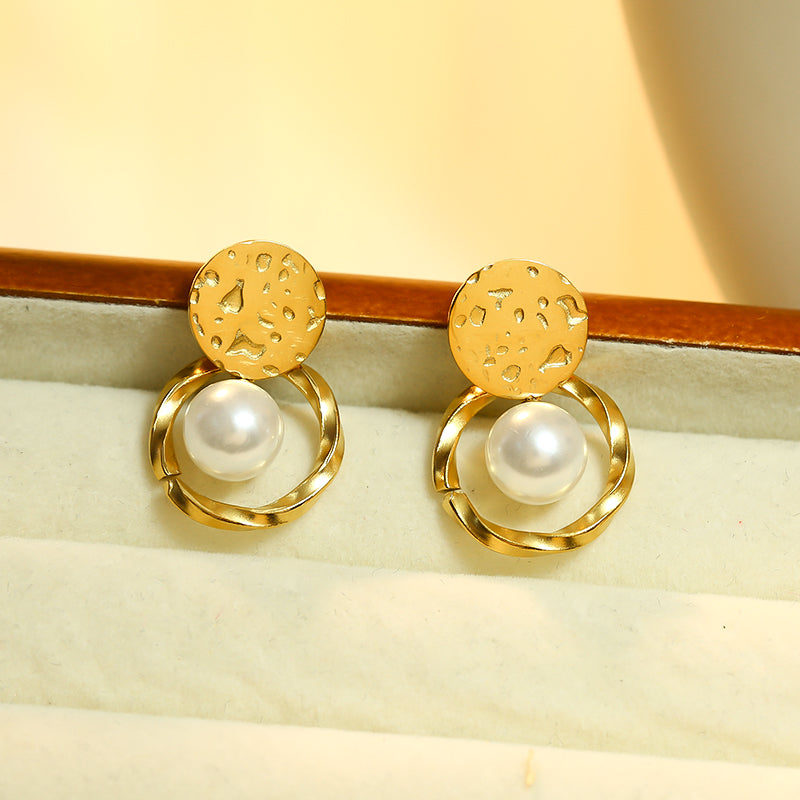 Prix régulier €13,00Prix soldé €13,00 Prix régulierPrix unitaire / parBoucles d'oreilles Dorées Perle Synthétique Avec Disque MarteléeTexture et brillance pour un duo perle et disque doré.Une perle synthétique repose sur un disque martelé doré, créant...