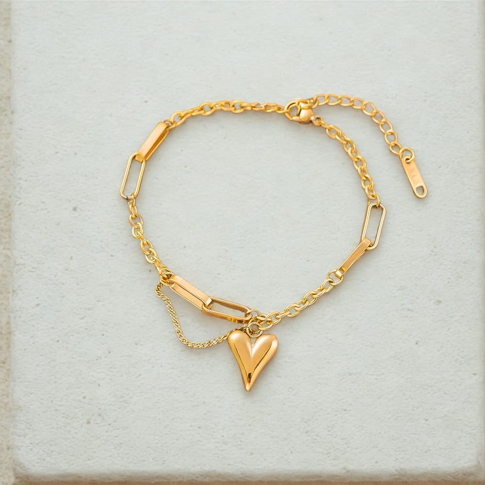 Prix régulier €14,00Prix soldé €14,00 Prix régulierPrix unitaire / parBracelet Cœur Enchaîné Bracelet romantique avec cœur doré sur chaîne double. Affichez votre douceur avec le Cœur Enchaîné. Son pendentif cœur et sa double chaîne le...