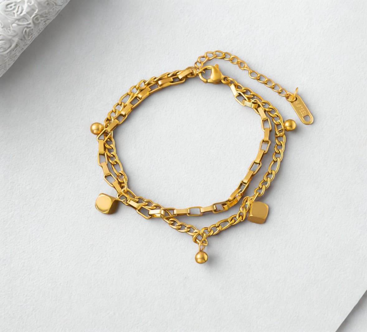 Prix régulier €13,00Prix soldé €13,00 Prix régulierPrix unitaire / parBracelet Chaînes & Cubes Dorés Design géométrique moderne avec double chaîne et breloques cubiques. Exprimez votre côté avant-gardiste avec le Bracelet Chaînes & Cubes Dorés. Sa...