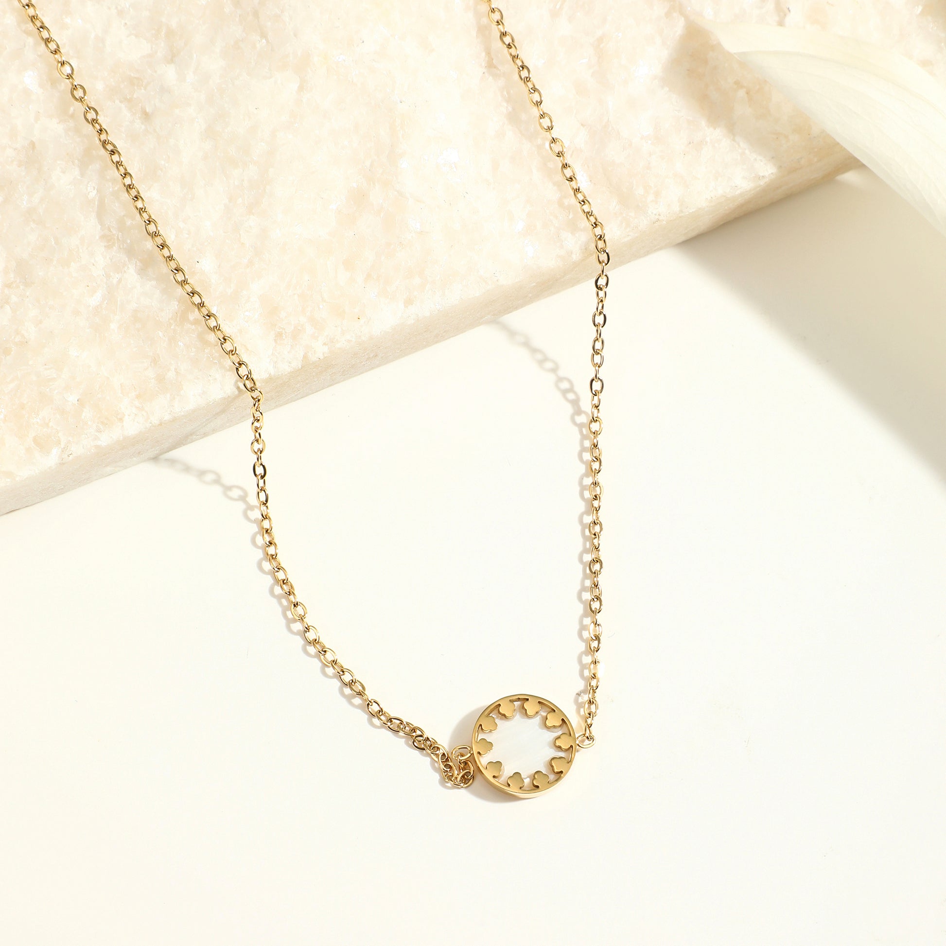 Prix régulier €10,00Prix soldé €10,00 Prix régulierPrix unitaire / parCollier chaîne dorée avec pendentif rond en nacre et fleurLa nacre rencontre la fleur pour une élégance naturelle.Ce pendentif associe un rond en nacre irisée à...