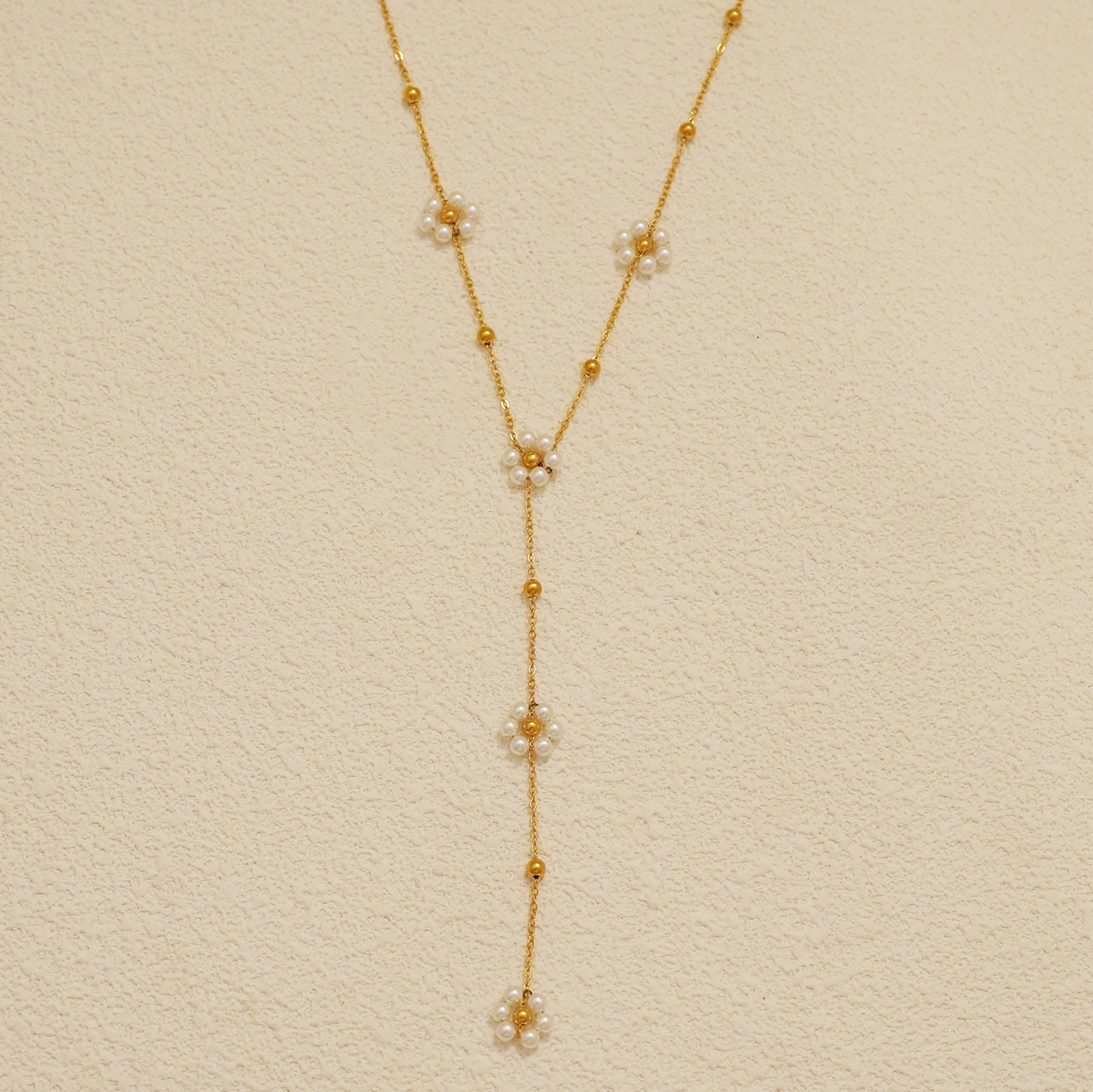 Prix régulier €18,00Prix soldé €18,00 Prix régulier €0,00Prix unitaire / parCollier doré en Y avec des marguerite en perlesUn collier fleuri plein de douceur.Les petites marguerites formées de perles s’alignent sur ce collier en Y délicat....